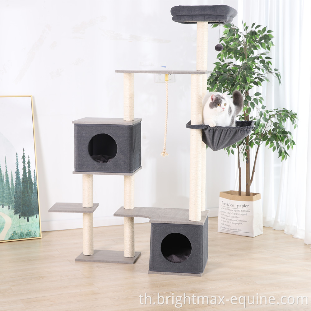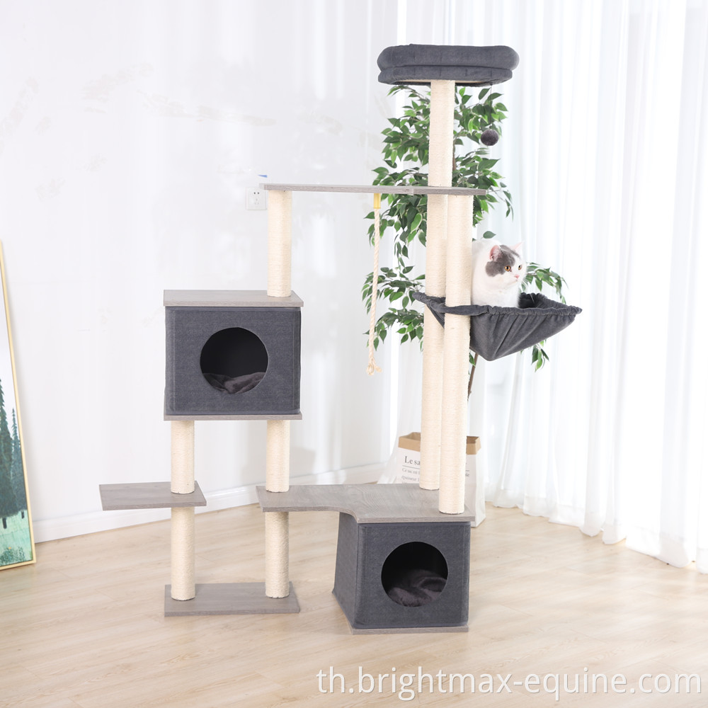 Multi Layers Modern Gray High Grade Cat Tower Furniture Wooden Cat Condo Scratching Post Tree