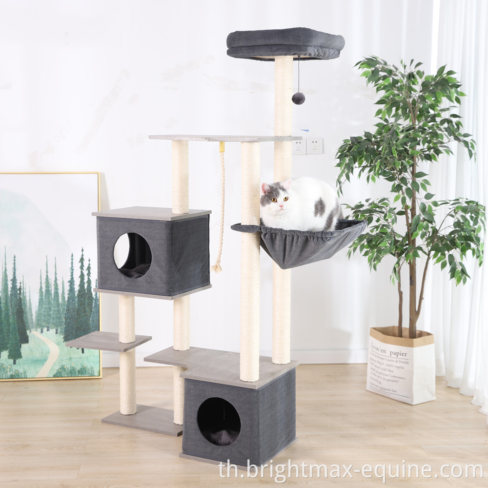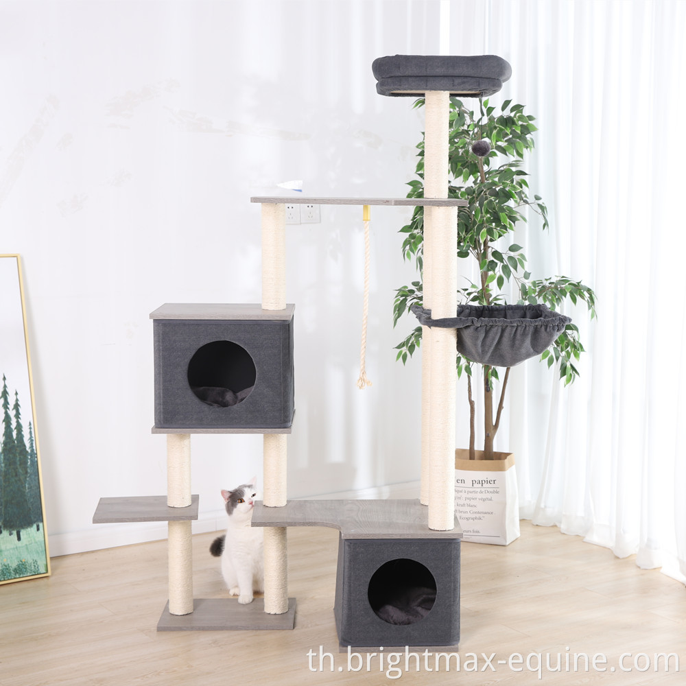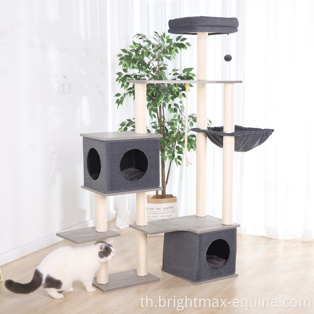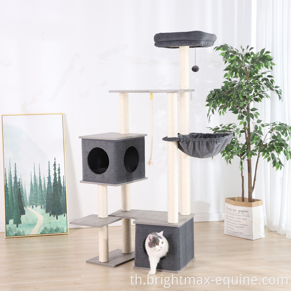เฟอร์นิเจอร์ Cat Tower ที่ทันสมัยหลายระดับรอยขีดข่วนไม้