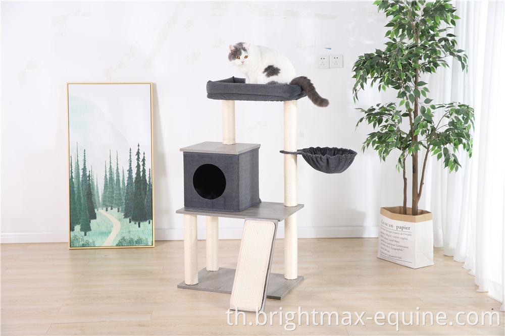 บ้านสัตว์ปัสสาวะที่ทันสมัยคุณภาพสูงบ้านต้นไม้สีเทาแมวเฟอร์นิเจอร์สัตว์เลี้ยงตัวขูดคอนโดโพสต์หอคอย
