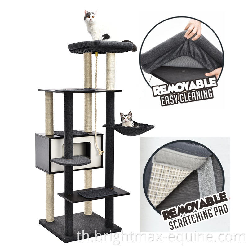 หอแมวไม้ขนาดใหญ่ที่ทันสมัยพร้อมเสาเกา