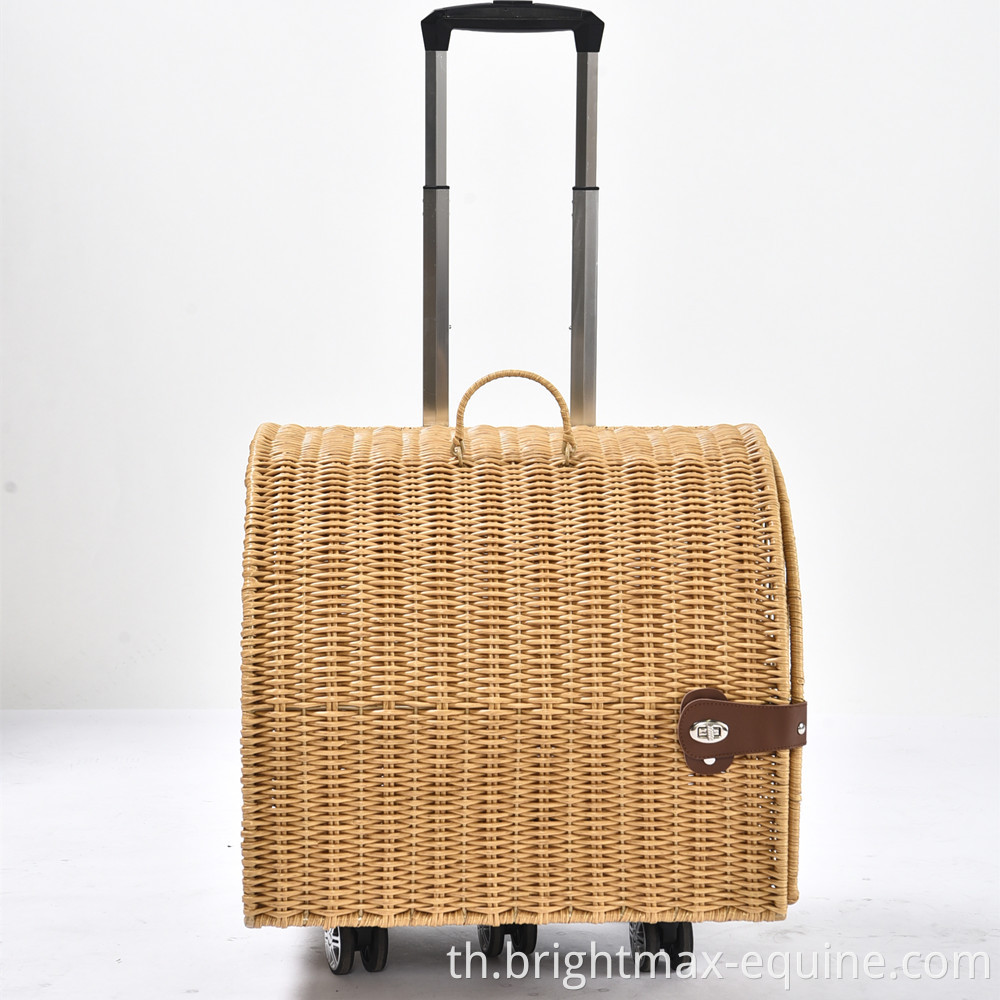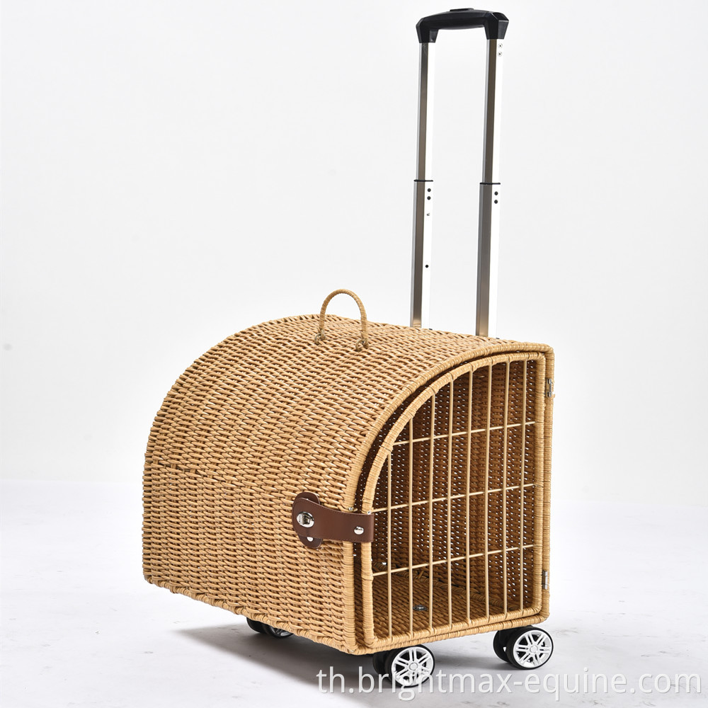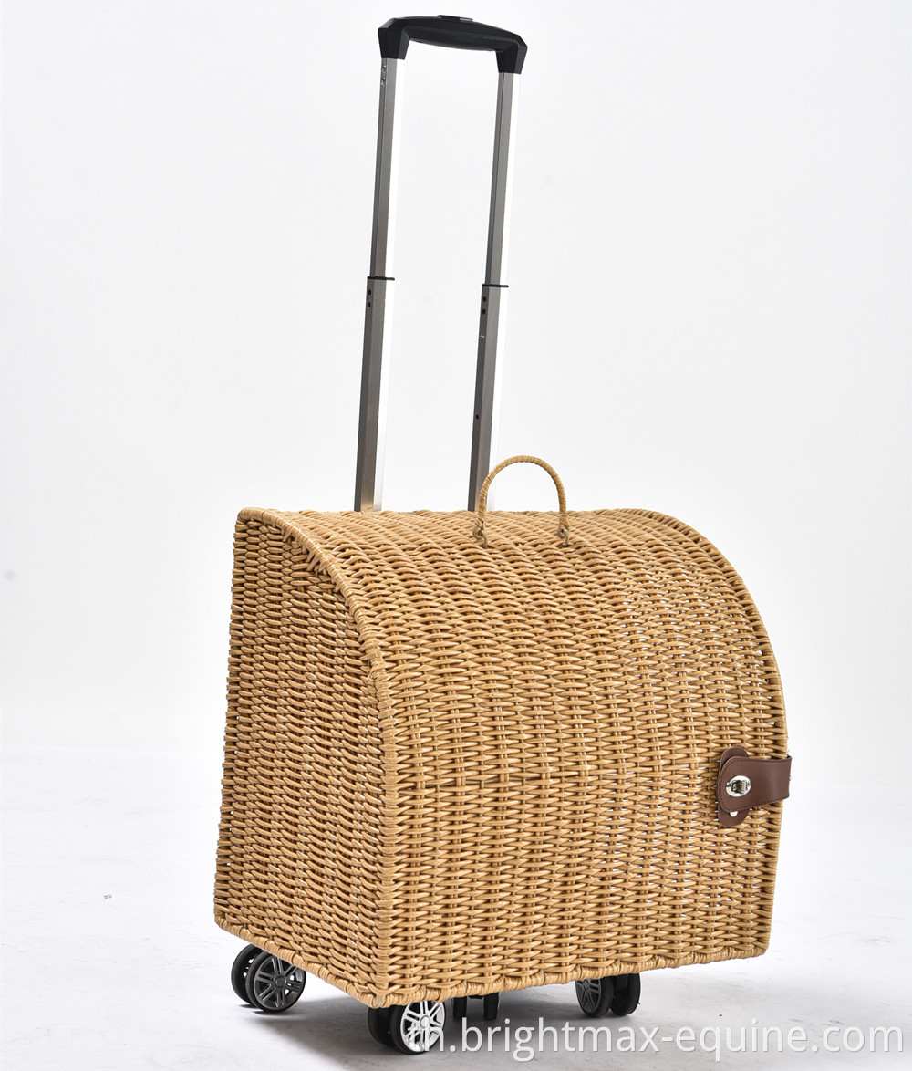 Artificial Rattan Wicker Travel Breathable Capsule Pet Carrier Bag Trolley Suitcase Portable Cat Dog Universal Case